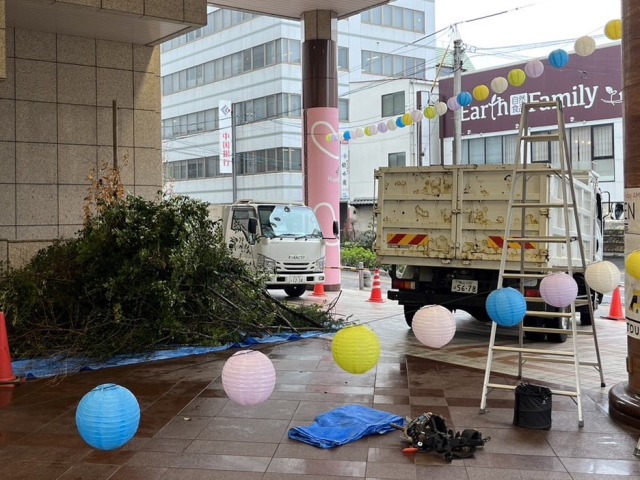 会場の飾り付けを関係者の方と一緒に行いました。